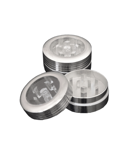 είναι ένα grinder κανονικό σε μέγεθος, με παράθυρο για να βλέπετε το βότανο σας, κατασκευασμένο από μέταλλο και διαθέτει 2 πατώματα (μέρη)