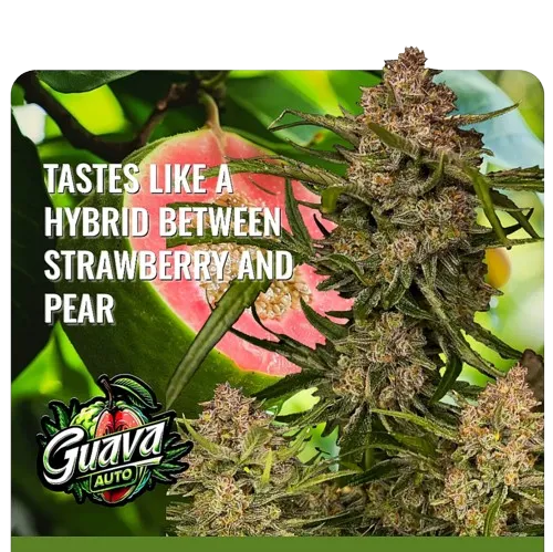 Το υβριδικό στέλεχος κάνναβης αυτόματης ανθοφορίας Guava Auto™ είναι μια εξαιρετική ποικιλία για καλλιεργητές κάνναβης σε πιο σκληρά κλίματα, καθώς αυτή η ποικιλία είναι εξαιρετικά ανθεκτική στα παράσιτα και τη μούχλα και μπορεί να καλλιεργηθεί χωρίς ιδιαίτερες δυσκολίες. Αυτό το υβριδικό autoflower κάνναβης αναπτύσσει μια πολύ ψηλή κεντρική κόλα με σχετικά κοντές πλευρικές διακλαδώσεις, φτάνοντας σε ύψος έως 120 cm και αποδίδοντας έως 550 gr/m2.