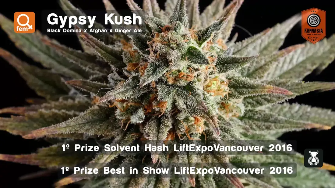 Αυτό το βραβευμένο υβρίδιο έχει συμπαγείς μπουμπούκια καλυμμένους με ρητίνη με γεύση έντονη γλυκιά, λουλουδάτη γεύση Kush. Ο Gypsy Kush κέρδισε βραβεία στον Καναδά στην κατηγορία του συμπυκνώματος και ξεχώρισε σε γεύση και υψηλή. Το Gypsy Kush είναι ψυχεδελικό , χαλαρωτικό και ευφορικό , το τέλειο στέλεχος αν ψάχνετε για ένα καλό γέλιο.