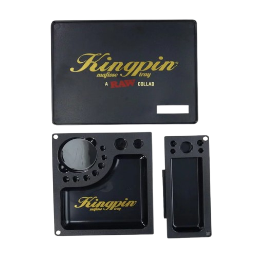 Το Mafioso Kingpin x RAW Collab Tray είναι ίσως το πιο ολοκληρωμένο, “έξυπνο” και premium rolling tray που κυκλοφόρησε ποτέ. Μια συλλεκτική συνεργασία ανάμεσα σε δύο θρύλους του χώρου – Kingpin και RAW – που προσφέρει λειτουργικότητα, στιλ και πρακτικότητα σε επίπεδο… μαφίας.