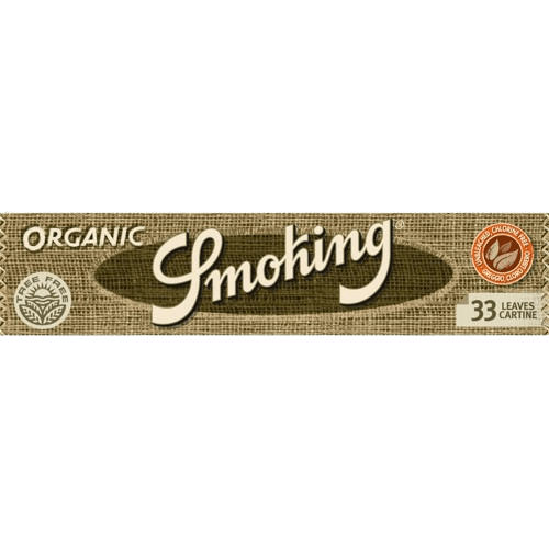 Το Smoking Organic King Size είναι ακατέργαστο (unbleached), με φυσικό καφέ χρώμα και βάρος μόλις 13 g/m², προσφέροντας αργή και ομοιόμορφη καύση. Η φυτική κόλλα εξασφαλίζει τέλειο κράτημα χωρίς να αλλοιώνει τη γεύση, ενώ το υδατογράφημα Smoking βοηθά στην ισορροπημένη ροή του καπνού σε κάθε ρουφηξιά.