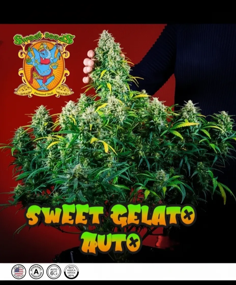 SWEET GELATO AUTO στέλεχος αυτοάνθισης 5ης γενιάς . Autoflowering έκδοση μιας από τις πιο ισχυρές και διάσημες αμερικανικές σειρές, που προέρχεται από τον κόλπο του Σαν Φρανσίσκο (Καλιφόρνια): Το Gelato (Sunset Sherbet x Girl Scout Cookies “Thin Mint”) είναι ένας από τους πιο εκτιμημένους εκπροσώπους της οικογένειας Cookies, με εξαιρετική άρωμα και υψηλή παραγωγή THC. Για να εισαγάγουμε τα γονίδια αυτόματης άνθησης στο Sweet Gelato Auto® (SWS76) χρησιμοποιήσαμε το Killer Kush Auto® (SWS56) το οποίο αναπτύχθηκε με τη γενετική OG Kush. Το αποτέλεσμα είναι ένα Autoflower με γλυκό και φρουτώδες άρωμα με έντονη παρουσία Kush, που περιλαμβάνει γήινους και ξυλώδεις τόνους που κλίνουν σε αποξηραμένα φρούτα (φουντούκια) και απαλές πινελιές μέντας και εσπεριδοειδών. Αυτό το φυτό αναπτύσσει πυκνούς ανθούς με υψηλή παραγωγή τριχωμάτων μεγάλου μεγέθους.