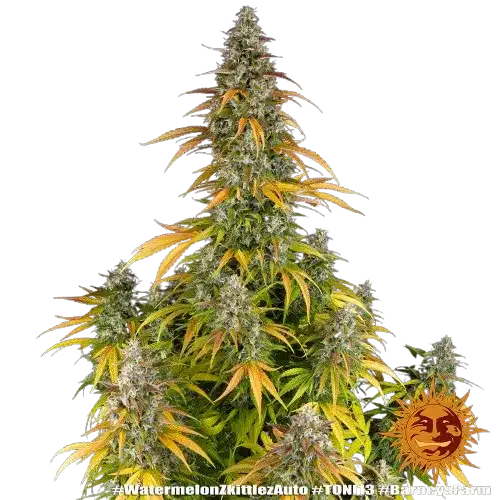 Watermelon Zkittlez Auto από τη Barney’s Farm: Προσέξτε, γιατί αυτό το τερατάκι έχει τη δύναμη να σας κάνει να πεταχτείτε σαν ελατήριο. Ανακαλύψτε τις ξεχωριστές φρουτώδεις γεύσεις που αναβλύζουν από αυτό το εκπληκτικό εργοστάσιο παραγωγής THC. Αυτό το φυτό αυτόματης άνθισης είναι εύκολο στην καλλιέργεια, και σε έμπειρα χέρια είναι ικανό να παράγει εξαιρετικές αποδόσεις άνω των 550gr / m². Παρ’ όλα αυτά, είναι ένα φυτό που μεγαλώνει μόνο του, χωρίς πολύ κόπο, οπότε μπορεί να είναι μια ιδανική επιλογή και για αρχάριους αλλά και για έμπειρους καλλιεργητές. Η εντυπωσιακή αυτή ποικιλία είναι ένας πραγματικά γρήγορος δαίμονας που θα ολοκληρωθεί σε μόλις 70 ημέρες από τη βλάστηση. Ένα “κορίτσι” εύκολο στο κλάδεμα που κόβει κάνει τη συγκομιδή μια ευχάριστη διαδικασία. Αφήστε τις απολαυστικές εγκεφαλικές επιδράσεις του να σας περιποιηθούν και να σας μεταφέρουν προσεκτικά σε μια εξαιρετικά γαλήνια κατάσταση. Το Watermelon Zkittlez Auto φτάνει σε ύψος έως και τα 140 εκατοστά, καθιστώντας το ιδανικό για βεράντα και μπαλκόνι. Τα υψηλά επίπεδα THC 26% εξασφαλίζουν ένα βαθύ και μακράς διάρκειας ευφορικό αποτέλεσμα. Φροντίστε να δοκιμάσετε τις καταπληκτικές τροπικές γεύσεις του τουλάχιστον μία φορά στη ζωή σας. Δεν θα το μετανιώσετε.
